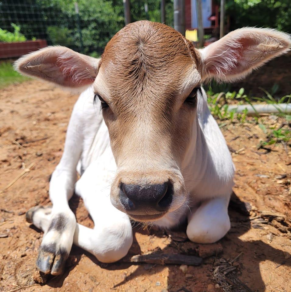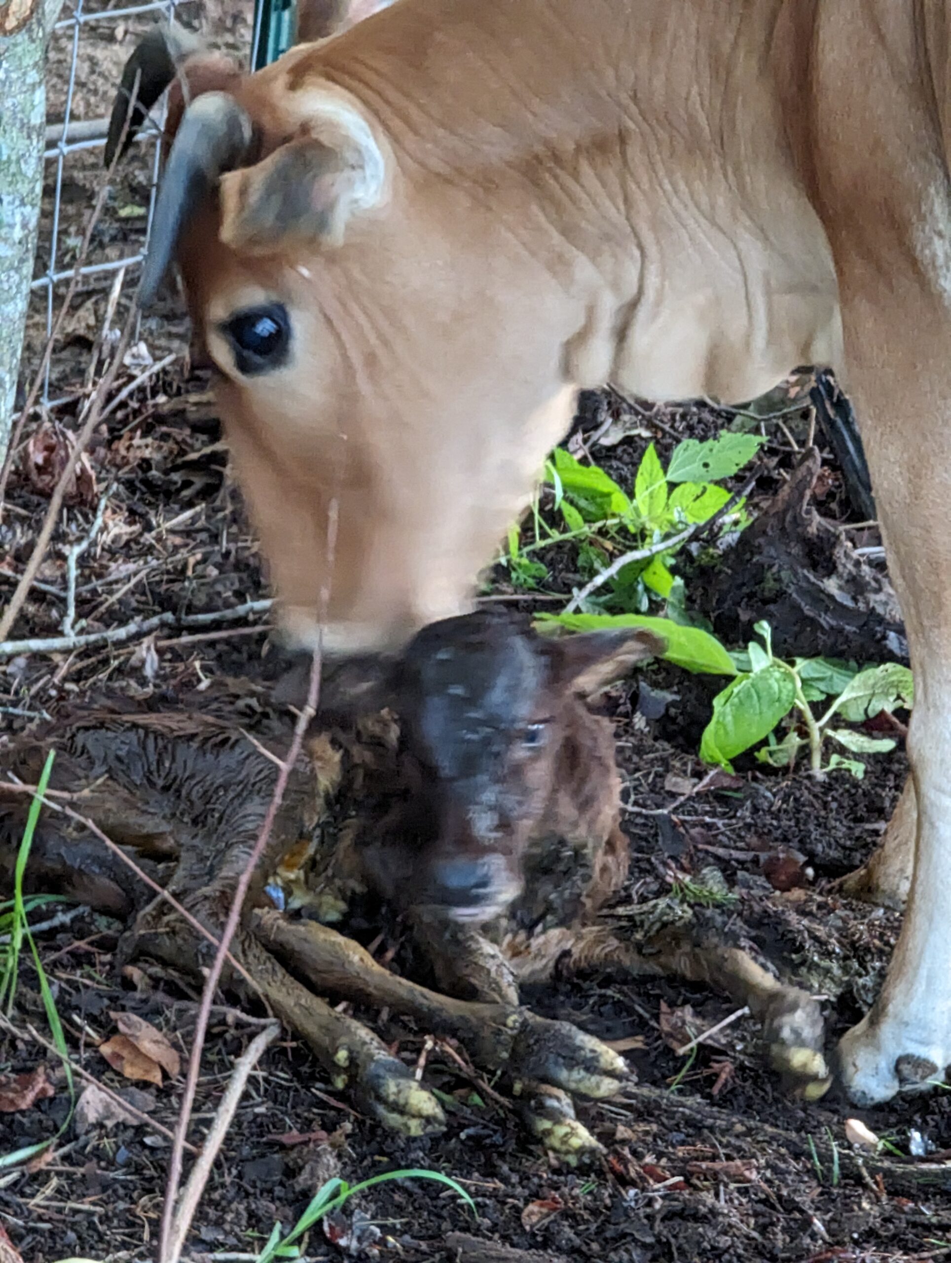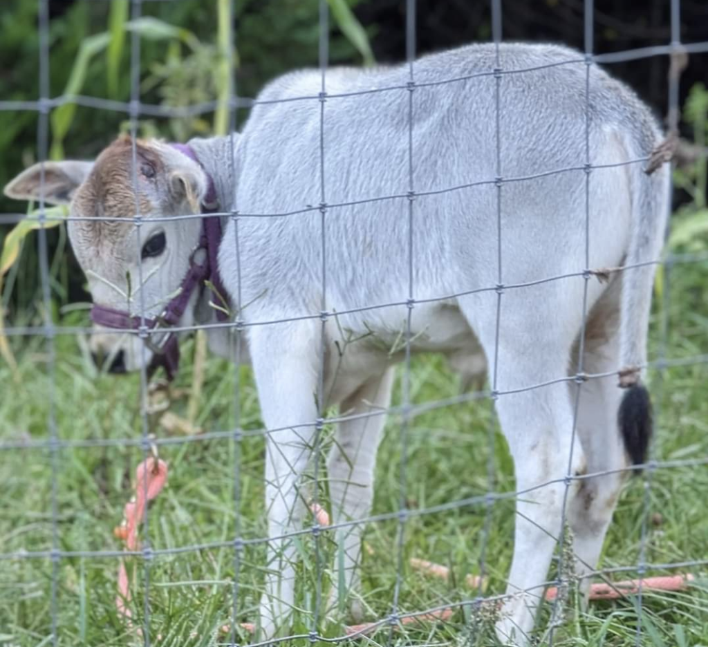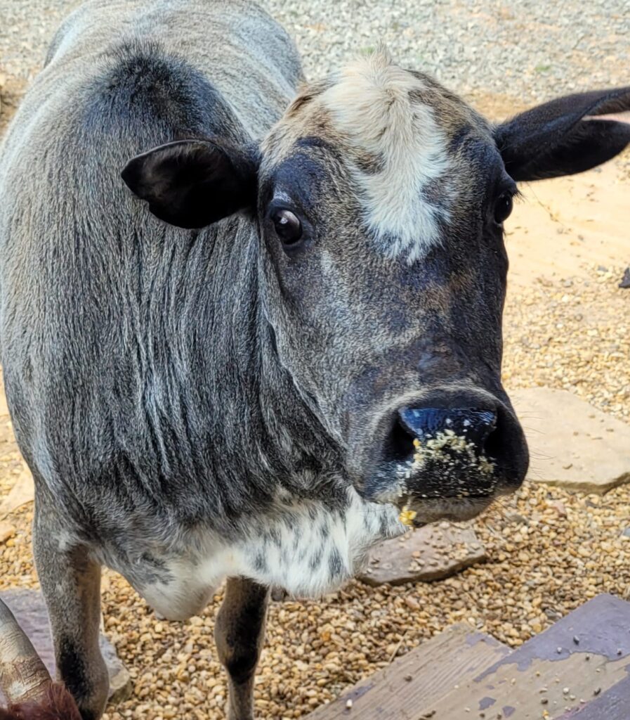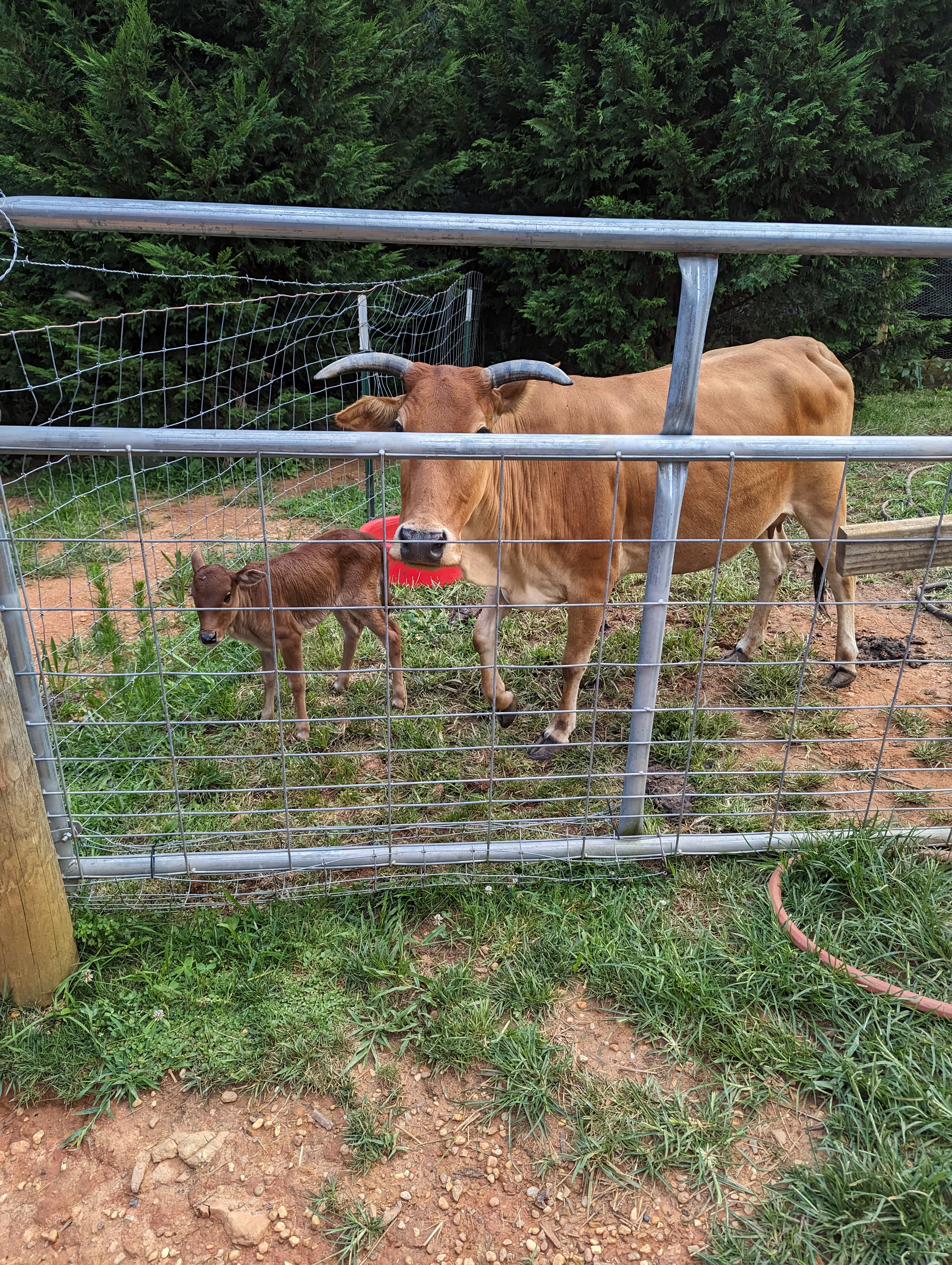 This is Jade. She came to us with a calf named Jummah by her side. She’s proven to be a good momma here on the farm. She calved Jasmine in 2023.