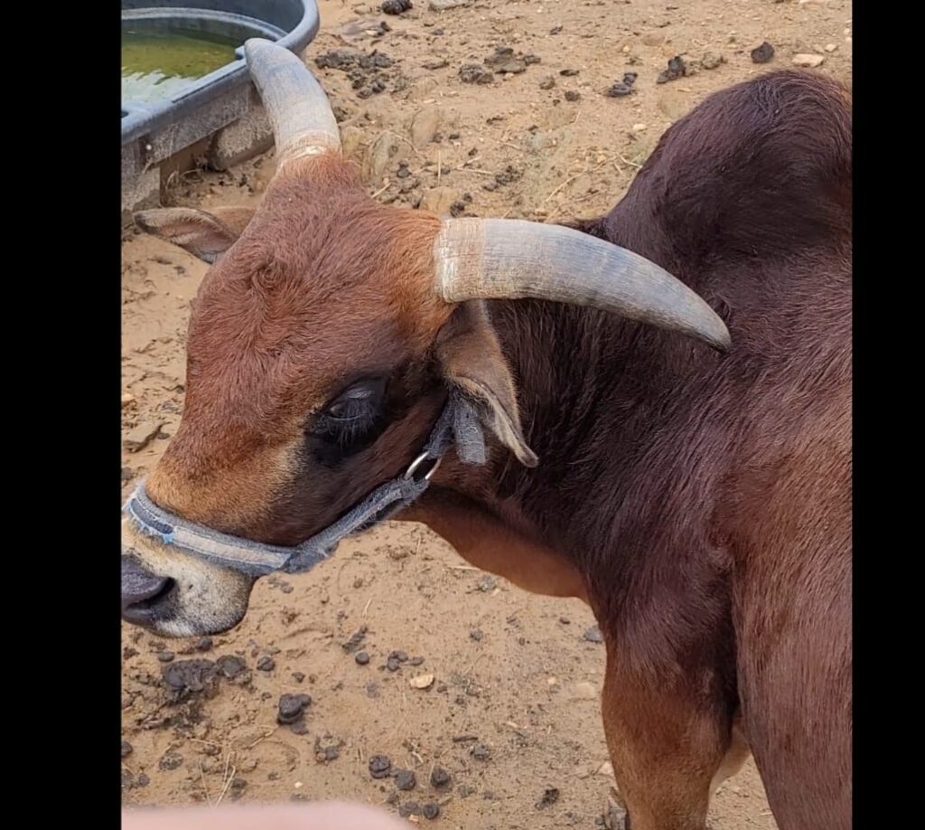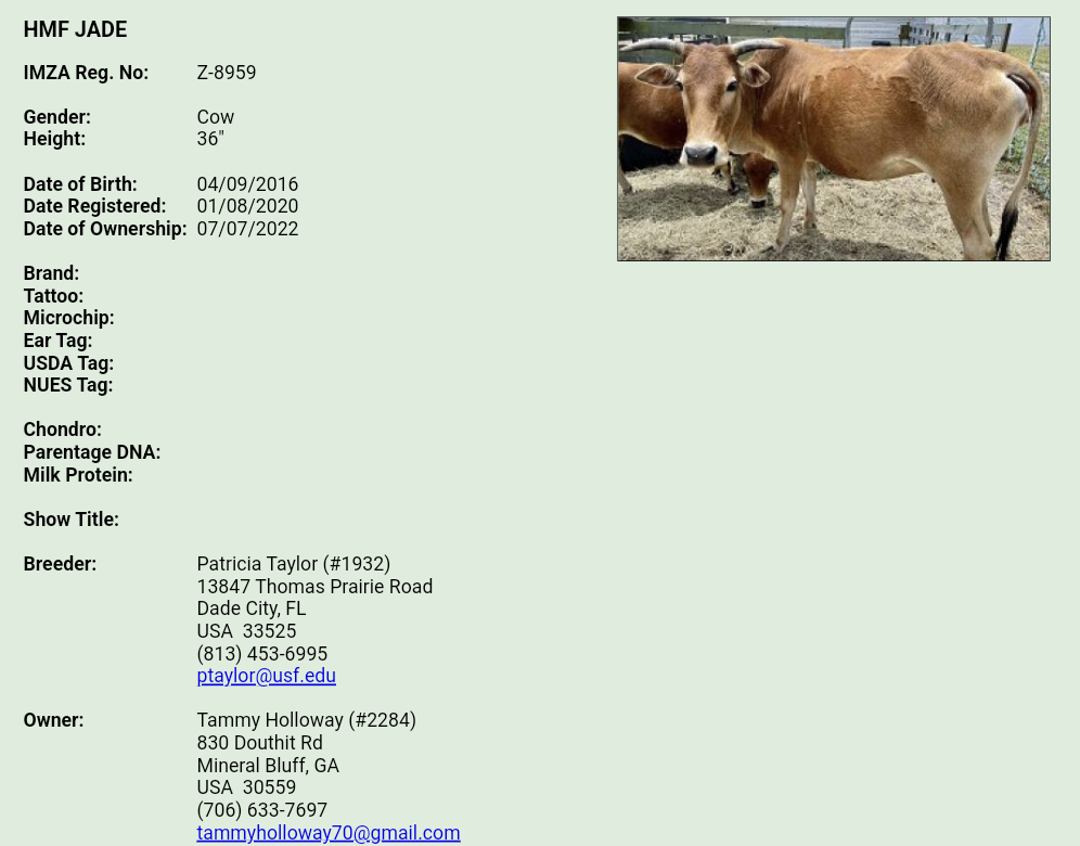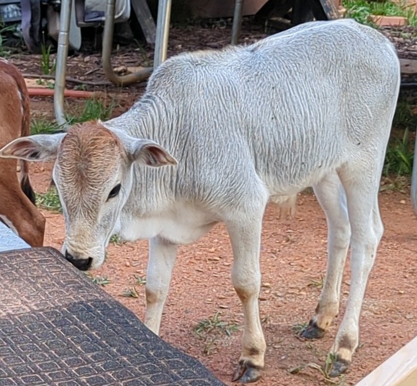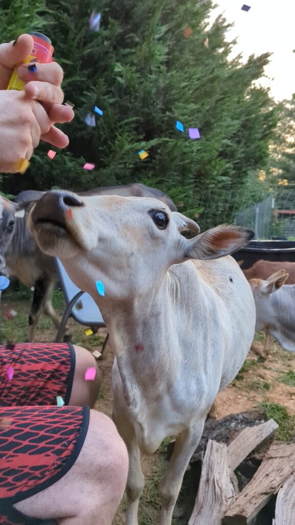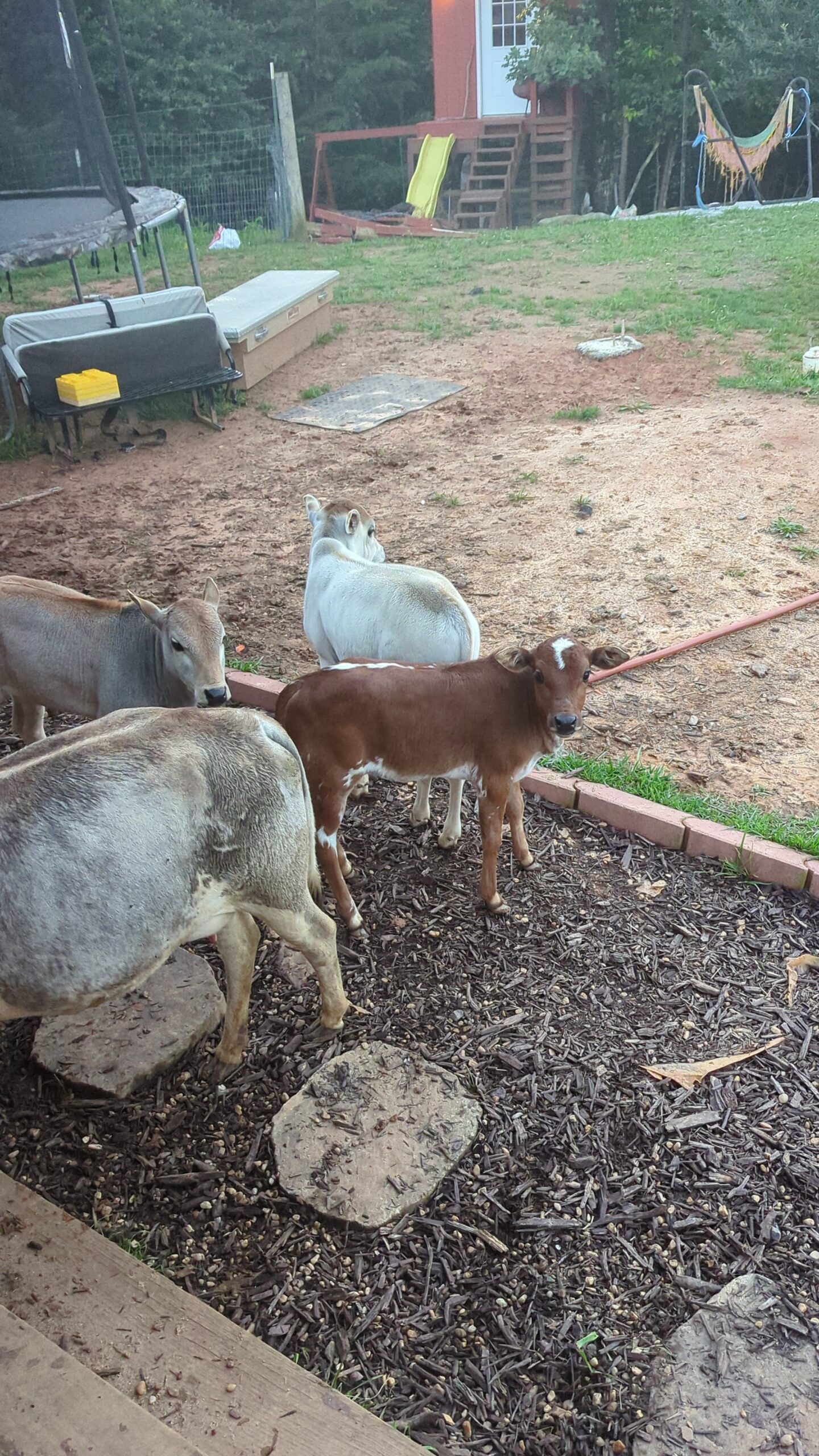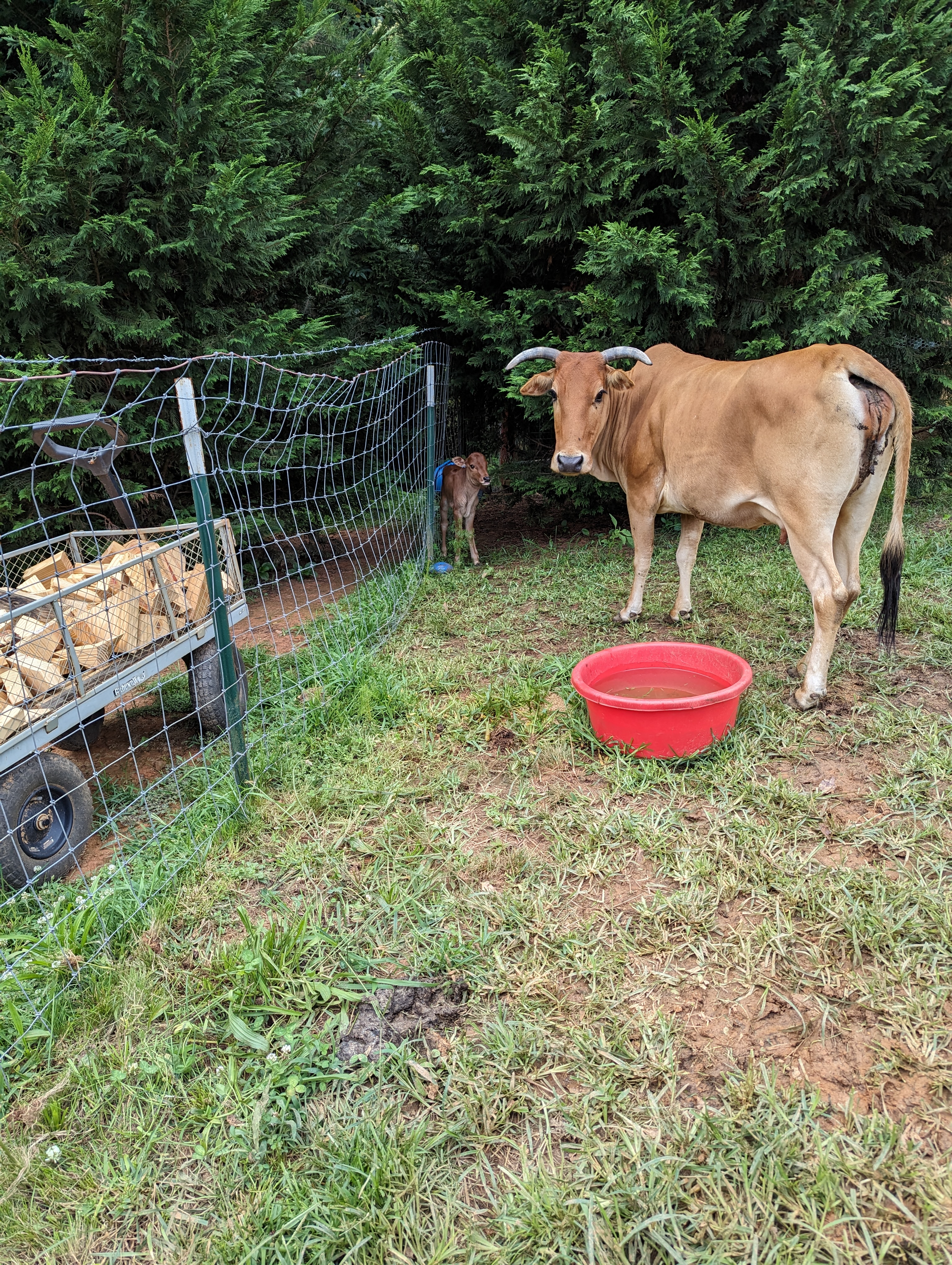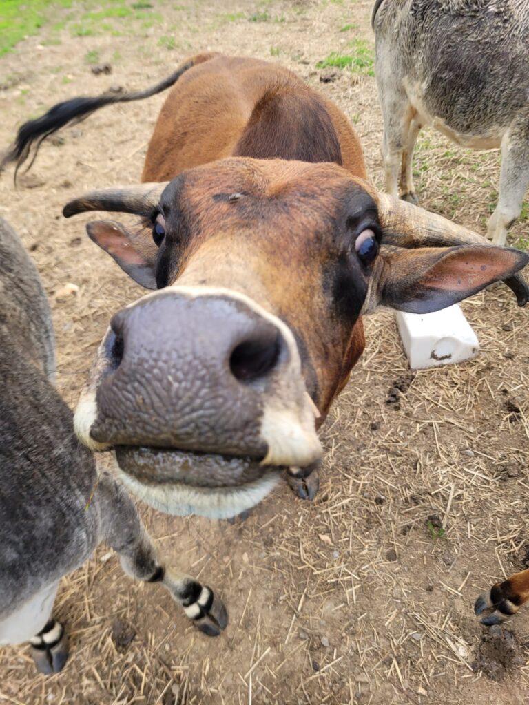 This is Jade. She came to us with a calf named Jummah by her side. She’s proven to be a good momma here on the farm. She calved Jasmine in 2023.