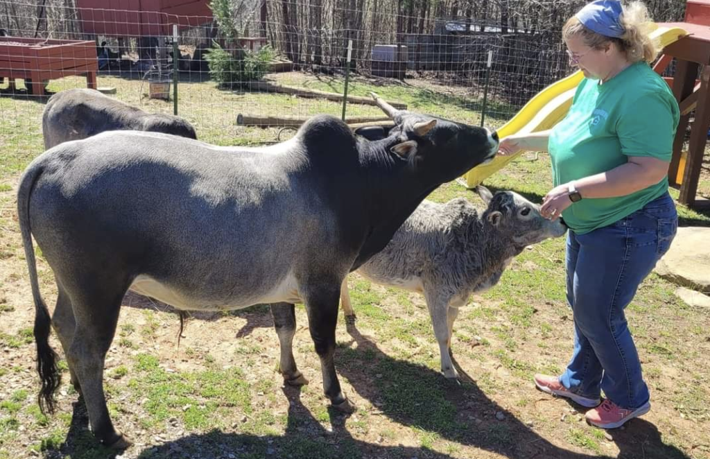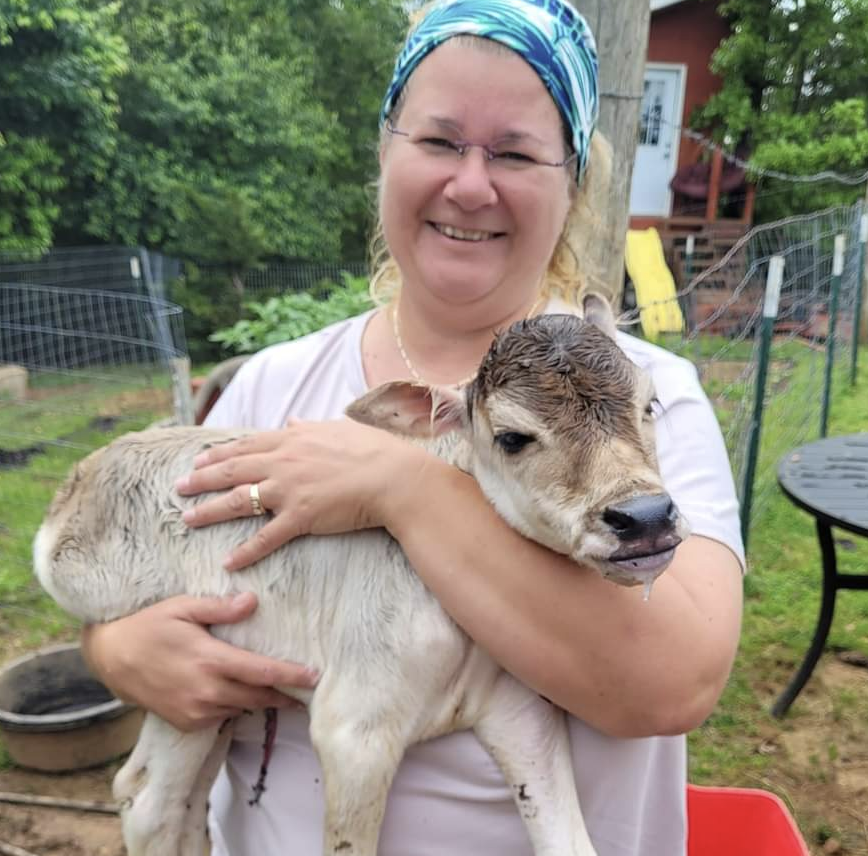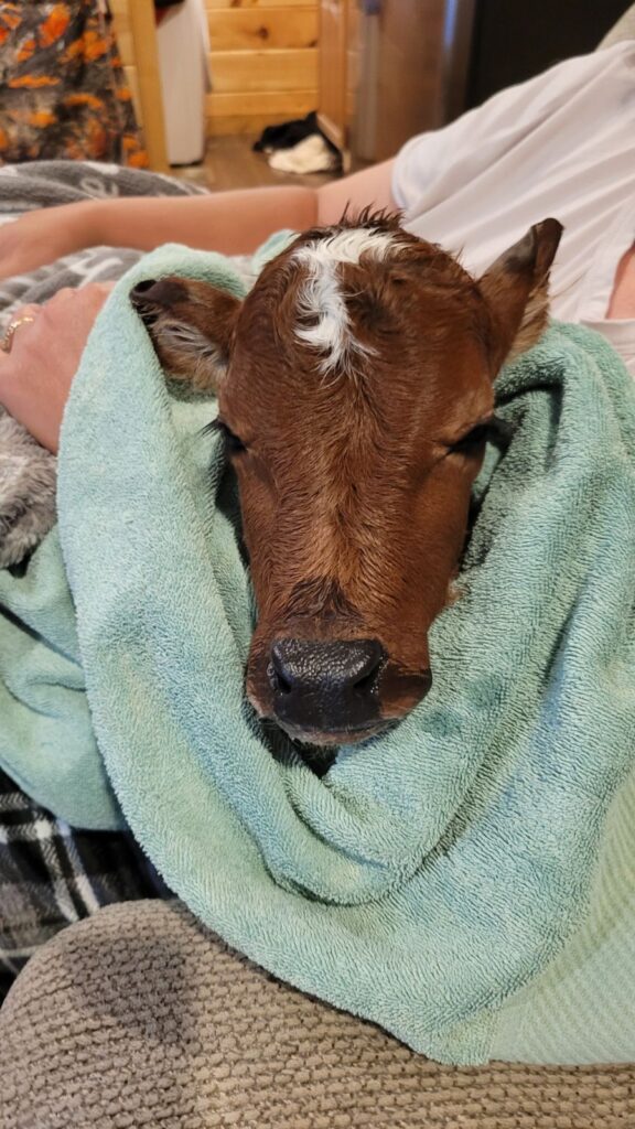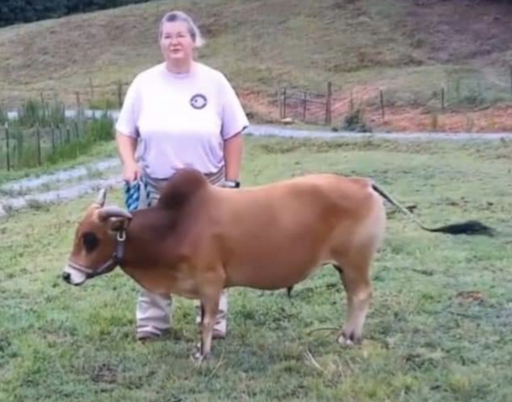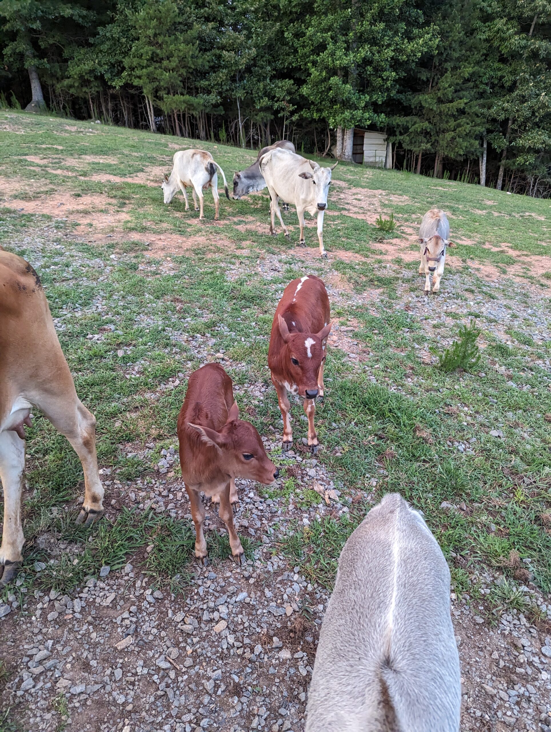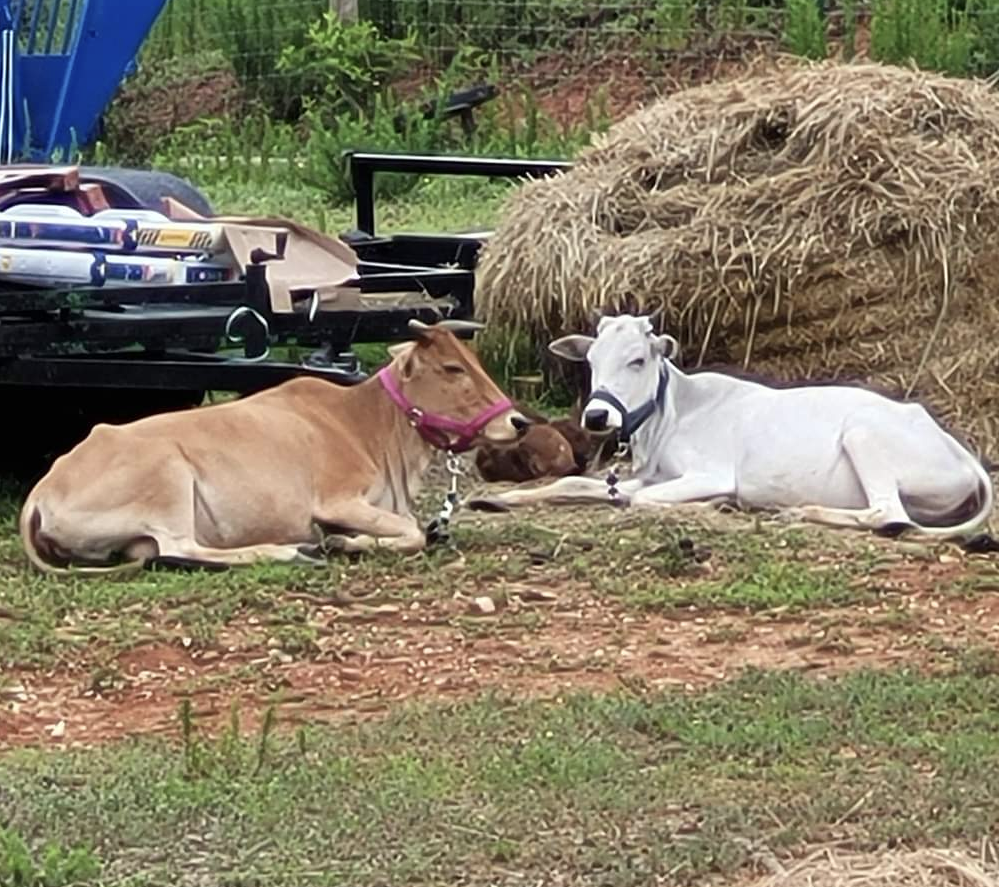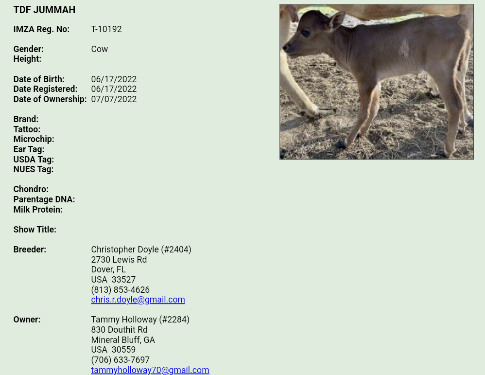 This is Jade. She came to us with a calf named Jummah by her side. She’s proven to be a good momma here on the farm. She calved Jasmine in 2023.