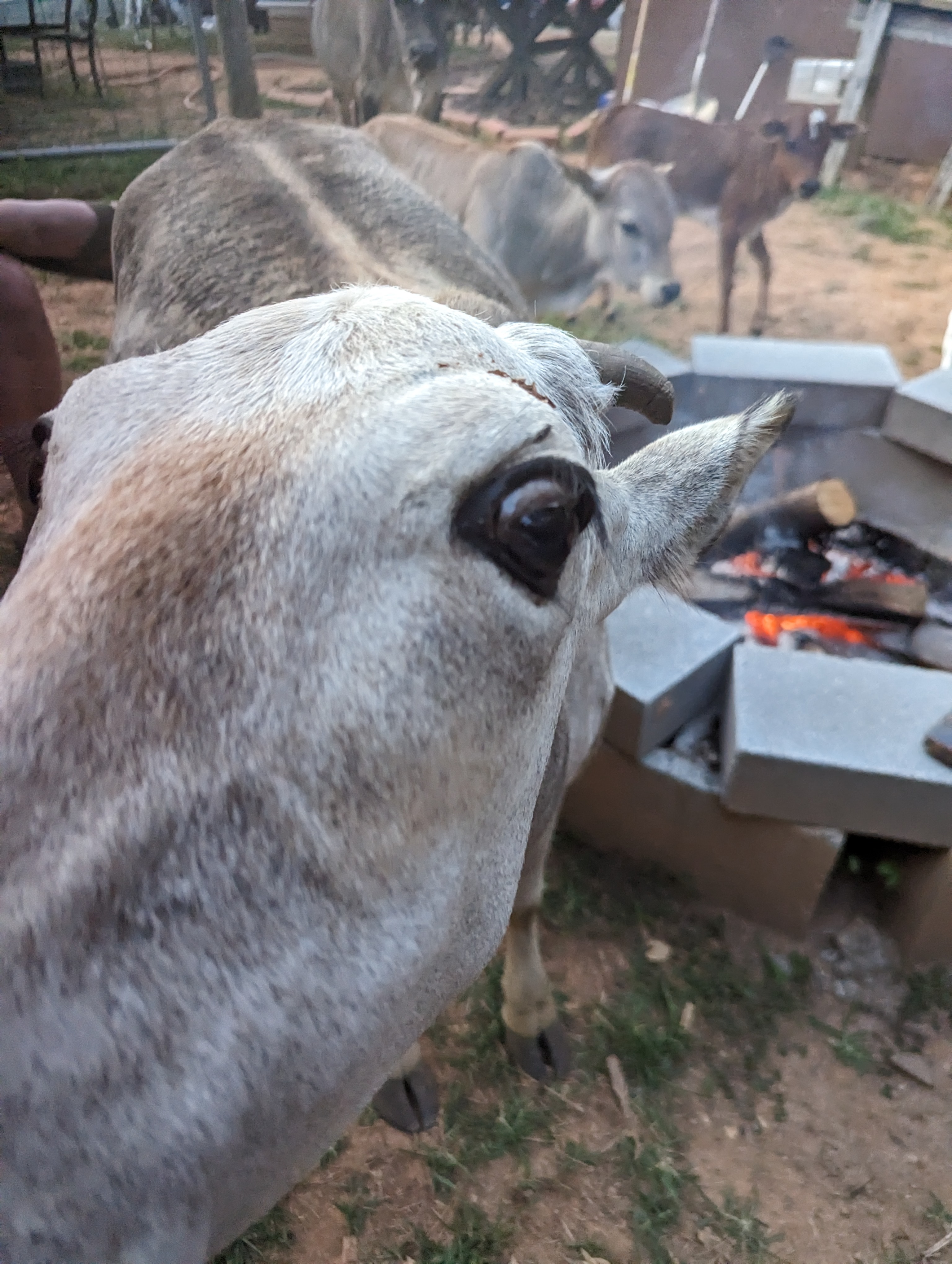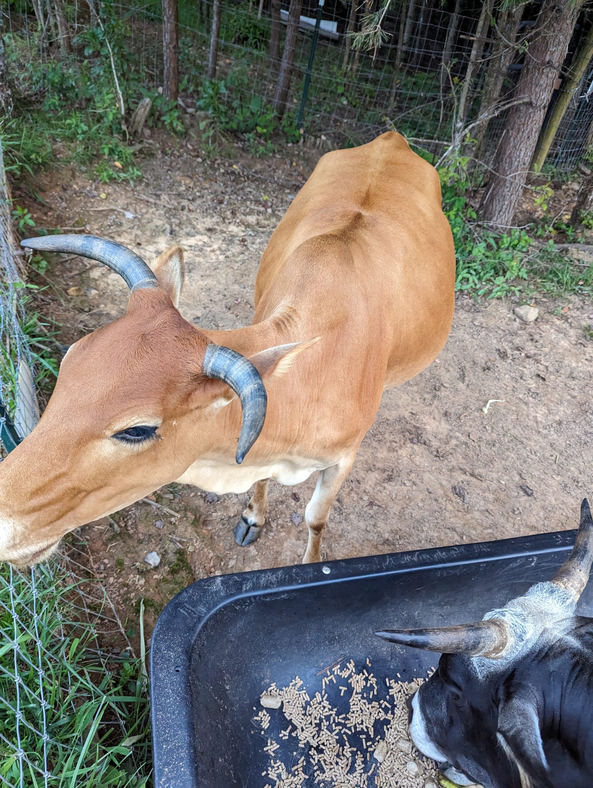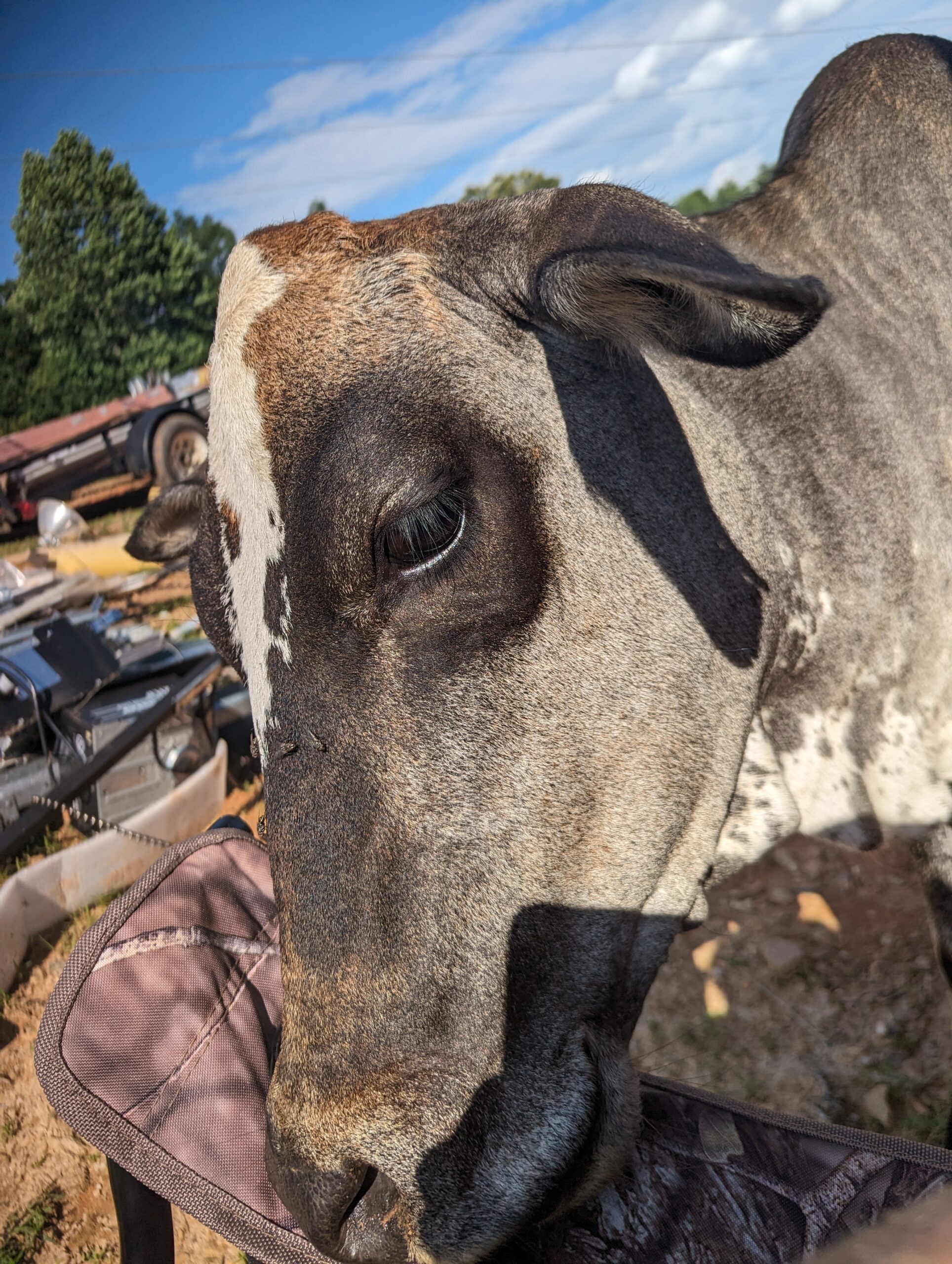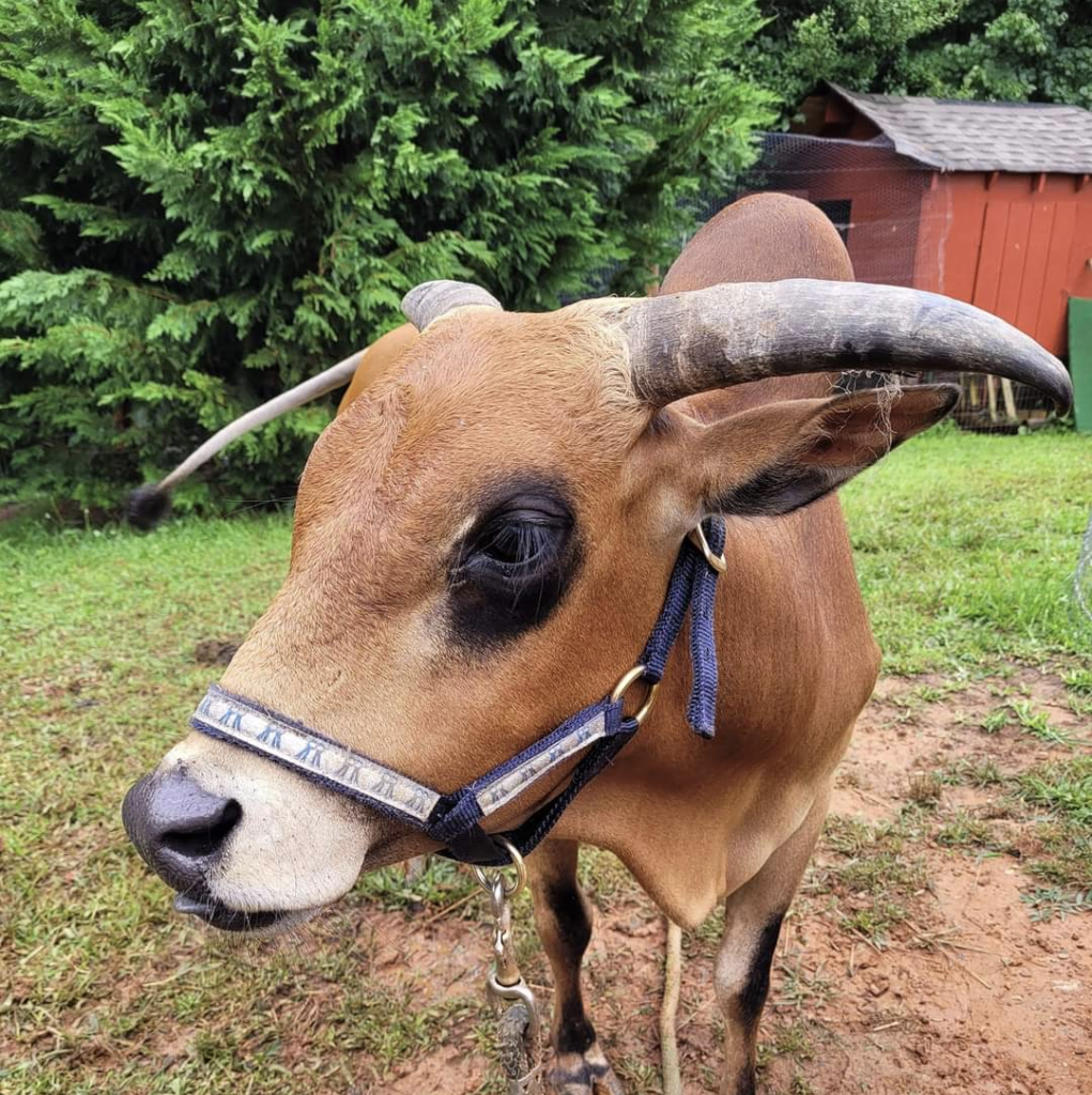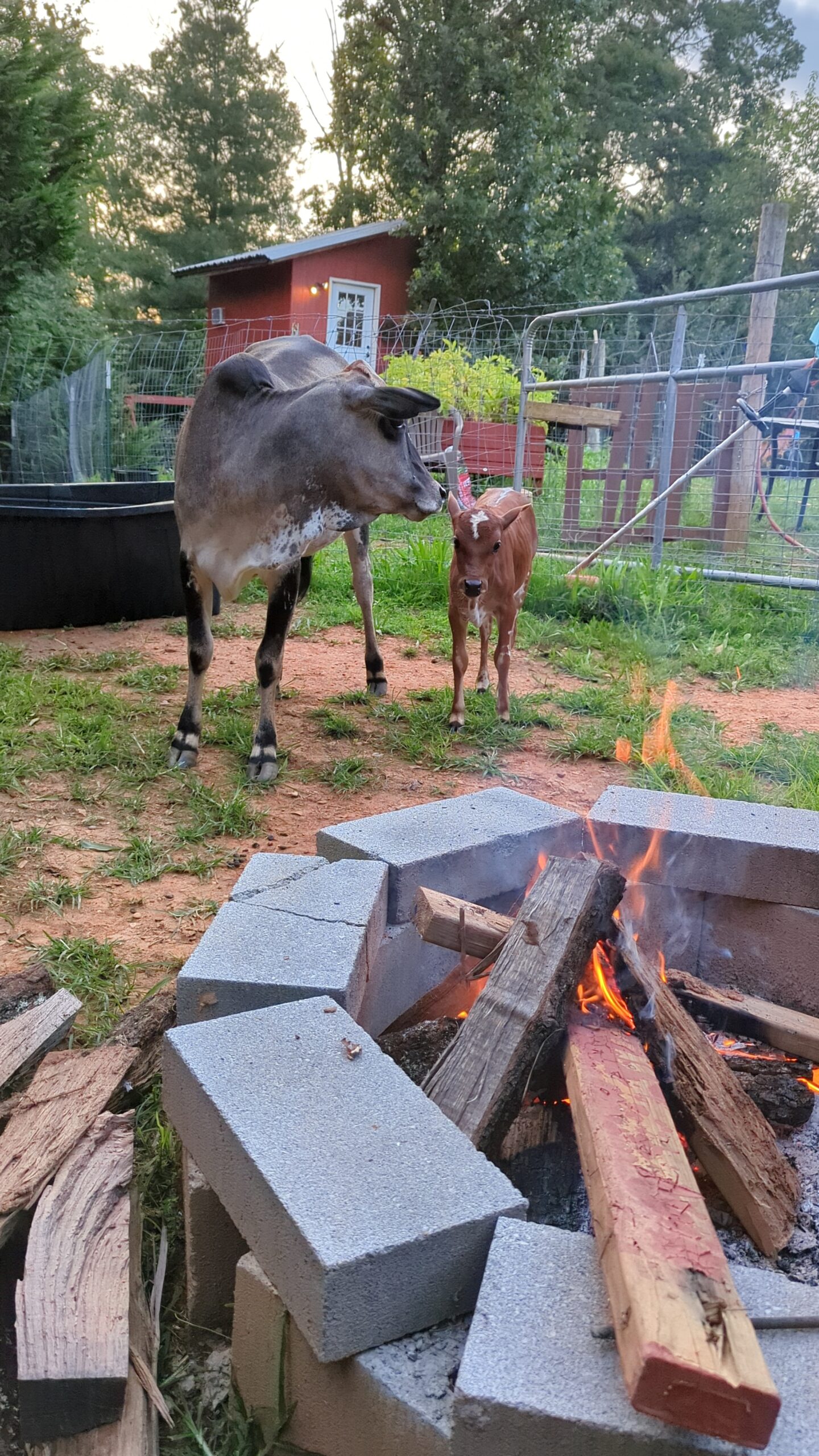 El Toro is our other herd sire. He was one of our first zebu on the farm. He has a very good disposition and is usually found following one of us around the farm. He enjoys standing around the bonfire with us.