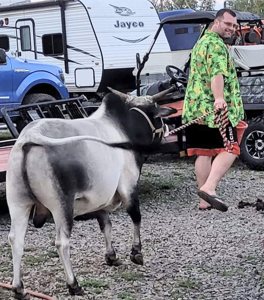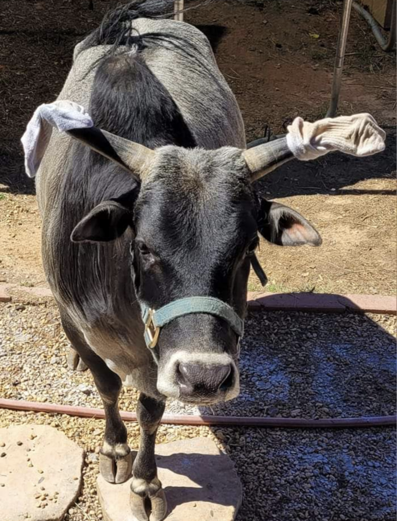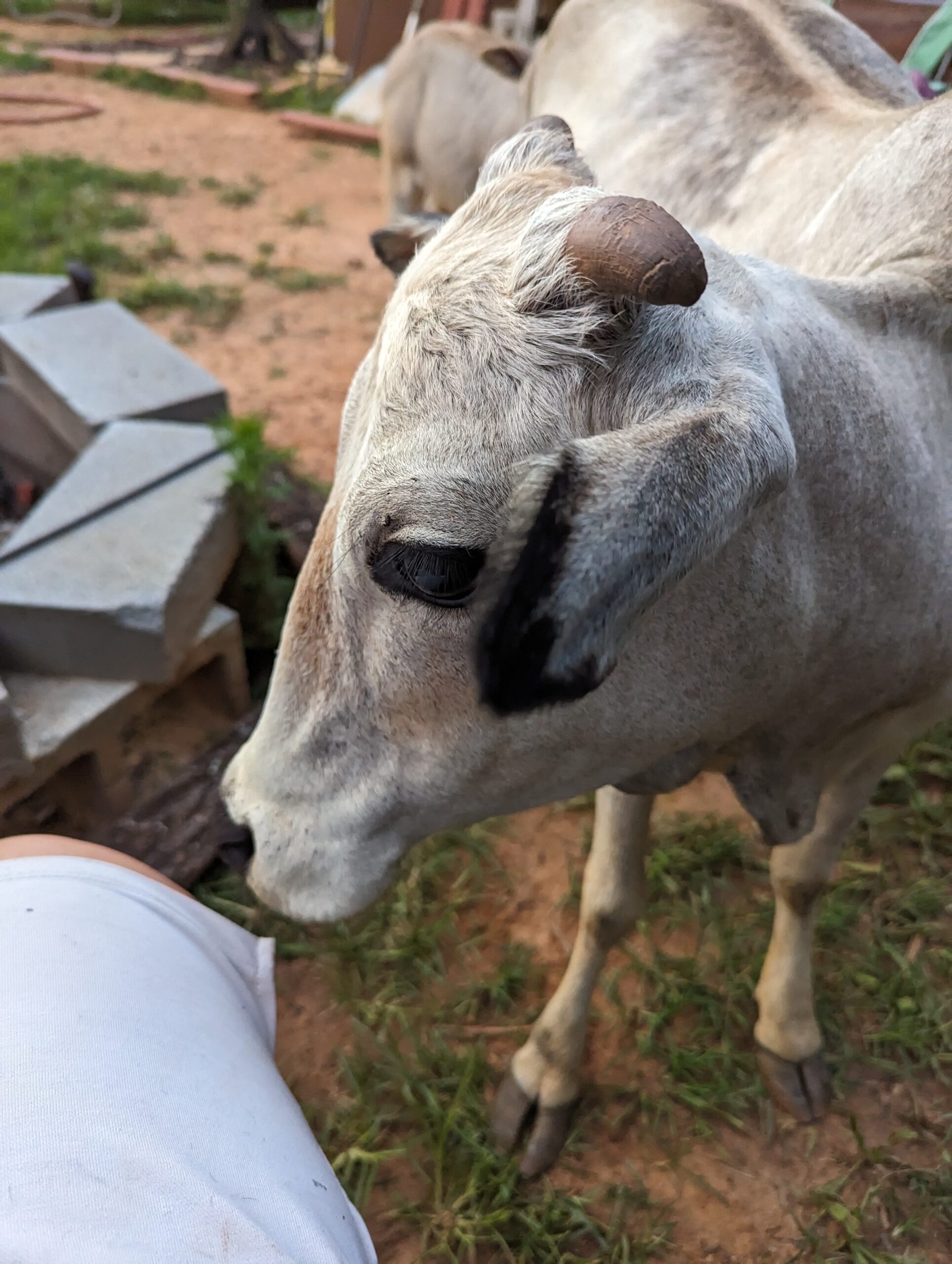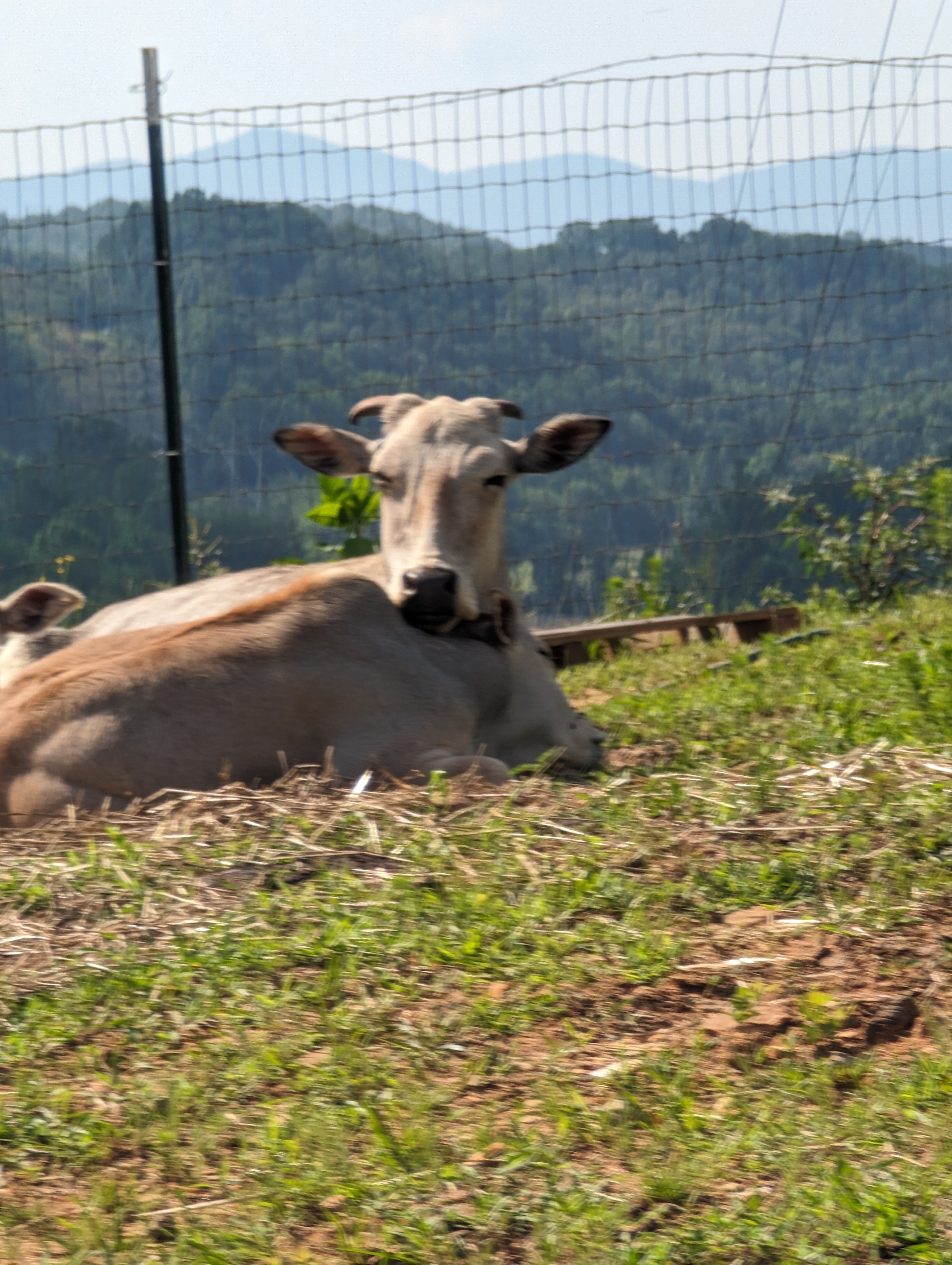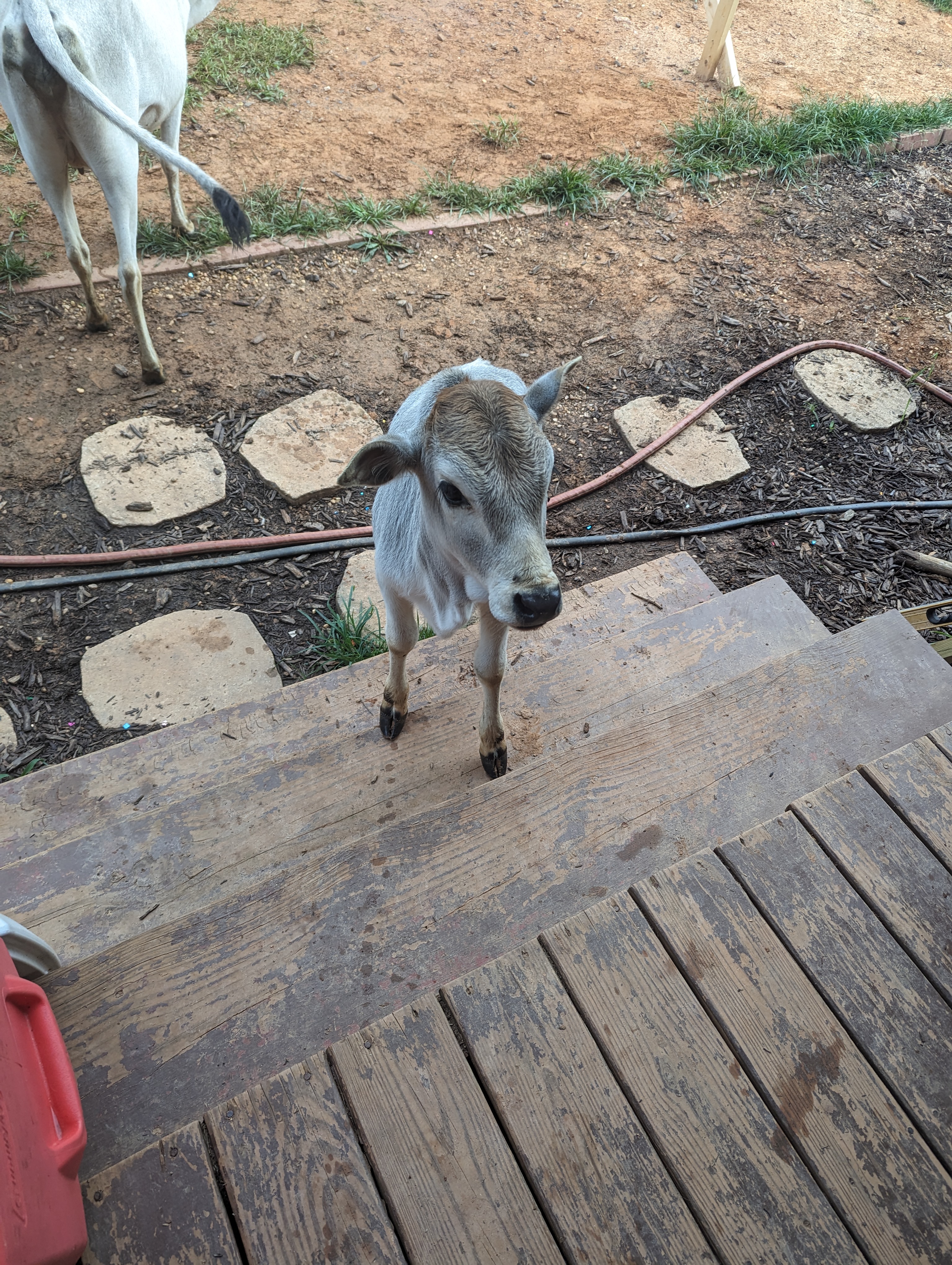El Toro is our other herd sire. He was one of our first zebu on the farm. He has a very good disposition and is usually found following one of us around the farm. He enjoys standing around the bonfire with us.