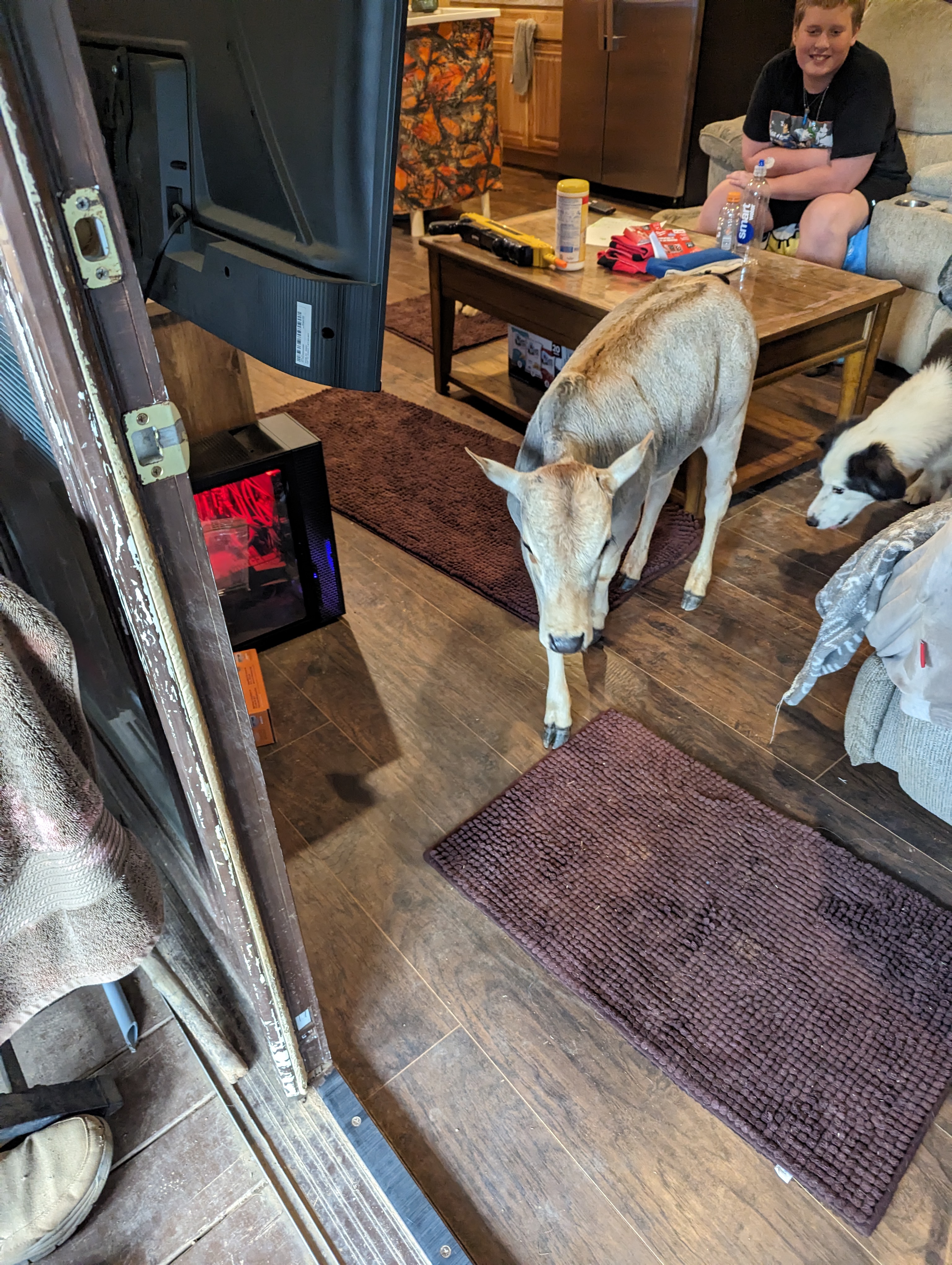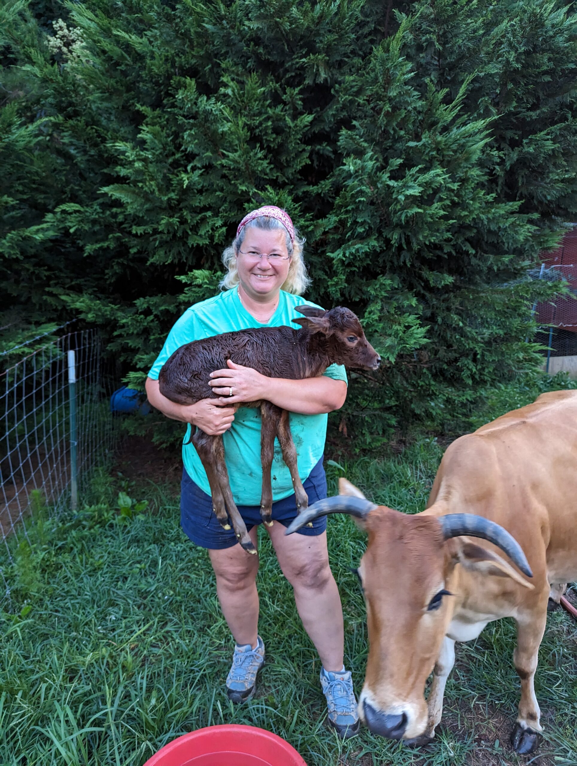 CanDo is one of our cows. She is named after the Seabees motto “Can Do”. She is the mascot of a Navy Seabee Veteran group. Since I was a Seabee, I thought it would be a good theme for the farm. CanDo recently gave birth to “Phoebe”. That’s what they call female Seabees.