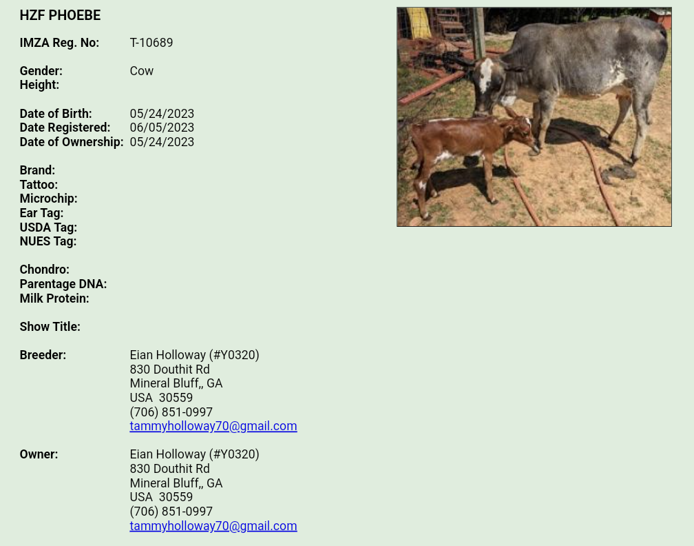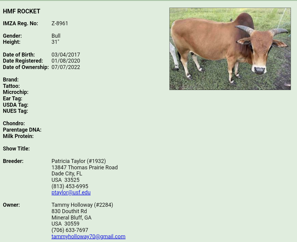 Fire is new to the farm. She will bring some nice colors in her calves. Her pedigree can be found by clicking here –> http://zebu.pedigree-db.com/pedigree.cgi?horse=T-10763&OwnerName=Tammy%20Holloway&SearchFor=1&Page=1&Sort=0